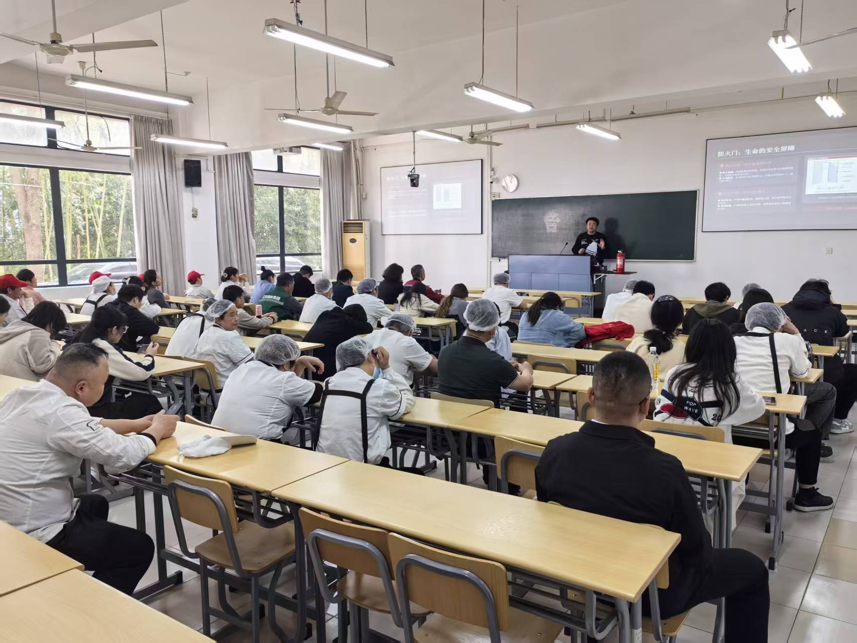 本次培训紧扣校园消防安全重点场景,以食堂消防安全为核心,同步覆盖宿舍消防安全要点,内容兼具专业性与实用性。培训中,消防专管员王老师结合高校食堂的火情风险特点,重点讲解了灶台用火、用电等安全规范,油烟管道、操作间等重点区域的日常防火巡查要求,以及消防软管卷盘、灭火毯等消防器材的使用方法,同时针对学生宿舍常见的宿舍吸烟、使用违章电器等安全隐患,认真解读了《消防法》的相关规定,普及了初期火灾扑救、火场逃生自救等实用知识。